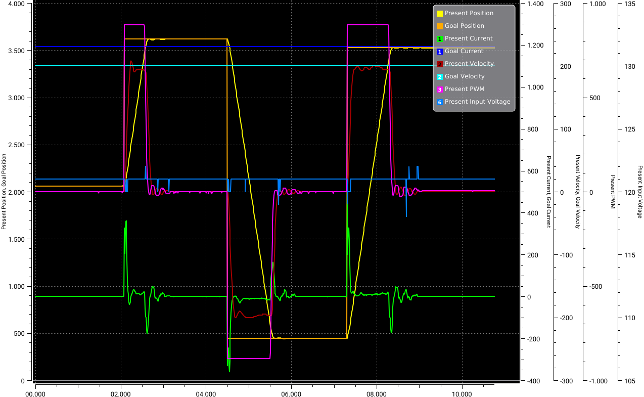 Using the Openmanipulator we collected data using the Dynamixel Wizard tool which enables us to control and measure each actuator of our Robot. An image of the measured test data is shown below.